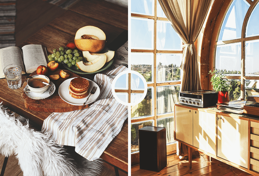Чтобы не было соблазна включить что-нибудь в качестве фона, сделай из приема пищи приятный ритуал: сервируй стол, поставь свечи и включи приятную музыку. Кстати, в красивых тарелках любая еда кажется вкуснее, поэтому в ресторанах уделяют так много внимания эстетике подачи блюд. Дома ты тоже можешь использовать этот лайфхак.