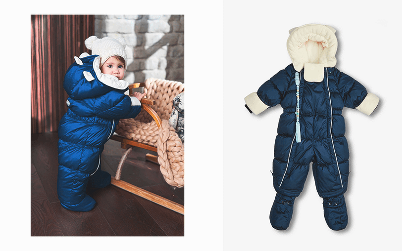 Познакомь его с новой вещью: рассмотрите вместе, сколько на комбинезоне или куртке карманов, замков, застежек, попробуйте отстегнуть капюшон, потрогать мягкий материал внутри. Расскажи, что на комбинезон нанесено специальное покрытие, которое отталкивает грязь и воду, а значит, ребенку не придется заходить домой после первого падения в снег.