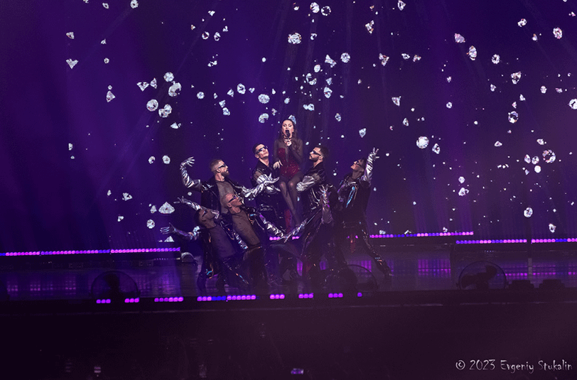 Самой сложной в исполнении оказалась одна из ключевых декораций шоу — зеркальные руки, создававшиеся четырнадцать недель. Их высота составила 9 метров, а сделаны они были из уникального материала, позволяющего оперативно надувать их в зависимости от номера.