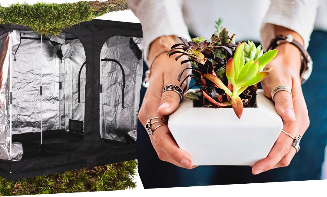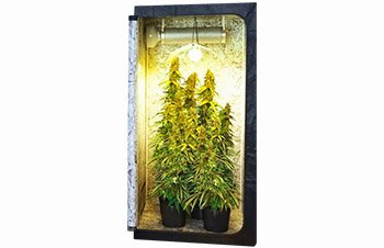 Выбери гроутент. Готовый обойдётся тебе в сумму от 5 тысяч рублей. Также можно собрать самодельный гроубокс из ДСП или фанеры со светоотражающим материалом на внутренней части и двумя отсеками: большим для растений и малым для техники. Габаритов 60x60x120 будет достаточно для выращивания двух растений средних размеров.
