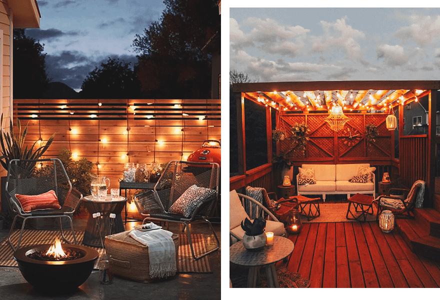 Сидеть в темноте не слишком приятно, поэтому нужно позаботиться об освещении. Оптимальный вариант — теплая светодиодная подсветка, которая превратит террасу в твой личный оазис спокойствия. Она смотрится современно, добавляет уюта и делает любой ужин на свежем воздухе более праздничным, а заодно помогает обезопасить от случайных падений и травм.