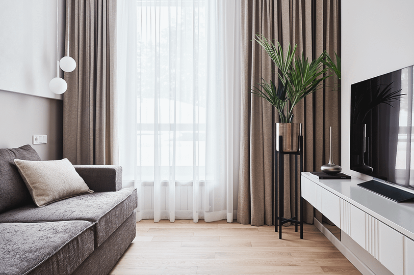 - Мягкая мебель и текстиль — классический вариант для маленьких квартир, работает только в комбинации с другими методами. Если ты просто поставишь диван посреди комнаты, она не разделится на две. Скорее, у гостей и домочадцев возникнут вопросы в уместности такого дизайнерского решения.