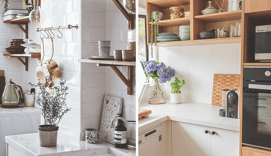 Организовать пространство на маленькой кухне — та еще головоломка. Кухонные мелочи удобнее будет хранить на небольших полочках на стенах или в подвесных корзинах — так можно разместить больше вещей. Если кухонная зона совсем небольшая, в качестве обеденного стола можно установить откидной аналог — он прилично сэкономит место.