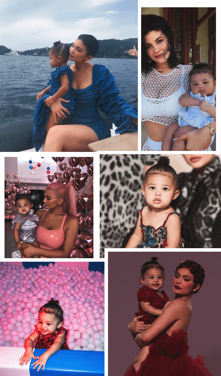 Привычка одевать детей в стиле family look — частое явление среди звезд, но лучше всех с этим справляется младшая сестра Ким Кардашьян Кайли Дженнер. Так, на одной из морских прогулок Кайли и Сторми были в одинаковых длинных синих платьях, а на винтажной фотосессии самая маленькая наследница клана Кардашьян-Дженнер позировала в коротком бордовом платье под стать наряду ее звездной мамы. Кайли всегда выбирает для Сторми все самое лучшее: например, на премьере документального фильма о ее отце репере Трэвисе Скотте, девочка появилась в стильном милитари-костюме, лаконичных белых кроссовках и драгоценных украшениях с бриллиантами.