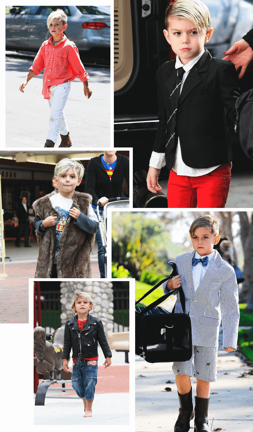 Самым эпатажным звездным ребенком по праву можно назвать старшего сына Гвен Стефани и Гэвина Россдейла. Пока Кингстон был совсем маленький, родители мальчика смело экспериментировали с его стилем, в котором преобладала эклектика. В его гардеробе можно было встретить укороченные джинсы, яркие клетчатые брюки, тяжелые высокие ботинки, кожаную косуху и даже меховую безрукавку, а свое пятилетие он отмечал в белой футболке, морковных бриджах и в пышной розовой пачке. Сейчас мальчик подрос и сам выбирает себе одежду, отдавая предпочтение спортивному стилю, в частности свободным футболкам и трико, шортам сафари и футбольной форме.