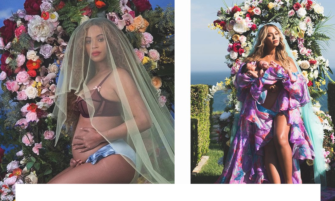 В 2011 году Бейонс из объявления о своей беременности сделала настоящий перфоманс на MTV Video Music Awards: после исполнения песни она расстегнула свою куртку и, улыбаясь, погладила свой живот. В 2017 году ее фотография с близнецами получила самое большое количество лайков в истории Instagram.