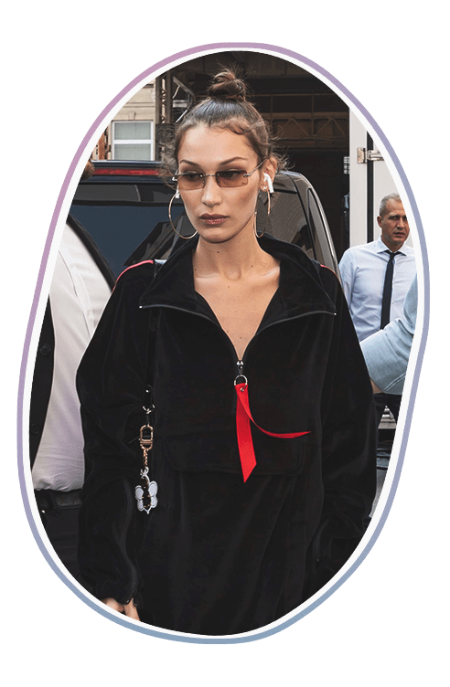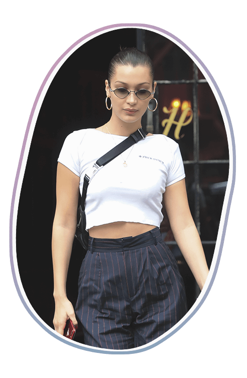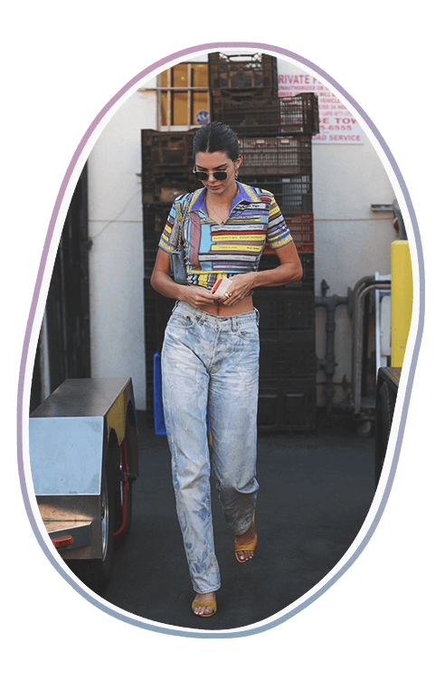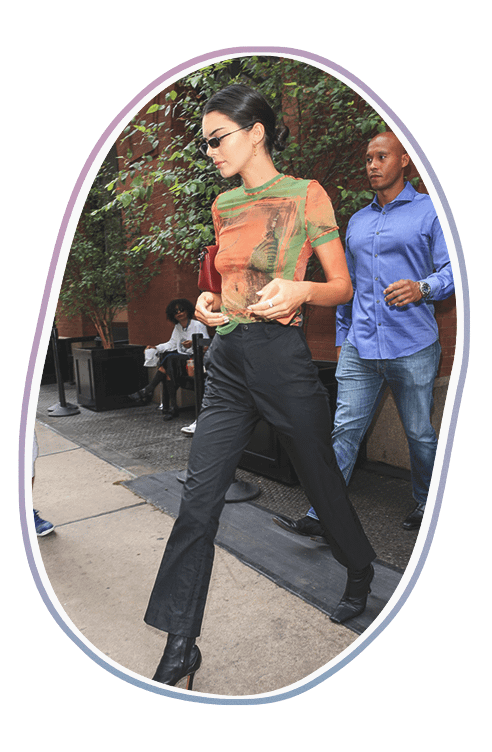 Топы в сеточку с короткими и длинными рукавами, популярные в 90-е годы и в начале двухтысячных, сегодня вновь актуальны. Винтажные модели чаще всего бывают либо с абстрактными изображениями, либо однотонные. Вдохновляйся образами в винтажном стиле Кендалл Дженнер. Модель сочетает обтягивающие цветные топы с брюками в тон на средней посадке. В качестве аксессуаров она использует небольшие сумки и очки прямоугольной формы.