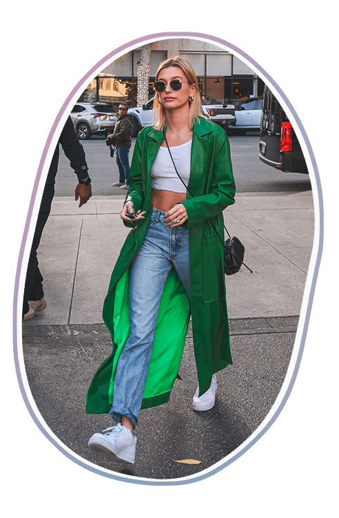 Кожаный плащ – универсальная и стильная вещь, которая придает образу загадочности и собранности. Особенно актуальны винтажные модели из натуральной кожи в черном цвете и оттенках коричневого. Удлиненные кожаные плащи хорошо сочетаются в одном образе с классическими джинсами с высокой посадкой. Именно так их предпочитает носить Кендалл Дженнер. Более яркую модель актуального в этом сезоне зеленого оттенка демонстрирует Хейли Бибер. Модель вдохновляет на создание простого, но яркого повседневного образа.