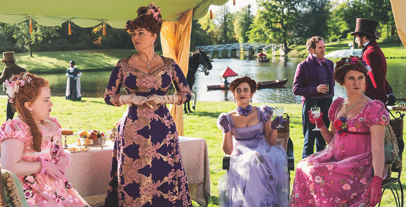 Примерно та же ситуация сложилась при создании проекта «Бриджертоны» для Netflix. Сериал повествует о жизни восьми братьев и сестер из Лондона: каждый из них желает состояться в обществе, найти любовь и зажить счастливо. Попутно в местном светском обществе появляется фельетонистка, пишущая инкогнито. Она рассказывает читателям о скандалах и секретах местной знати. Ее ненавидят, но при этом заметки неизвестной персоны не перестают читать.