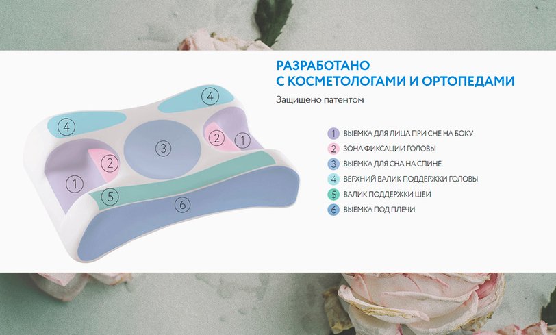 Высококачественный и технологичный материал Memory Foam под воздействием веса и температуры тела Memory подстраивается под форму твоего лица и шеи, обеспечивая комфортный и крепкий сон. Благодаря специальному дизайну подушка Beauty Sleep предотвращает появление утренних отеков и морщин сна, а также разглаживает уже существующие.