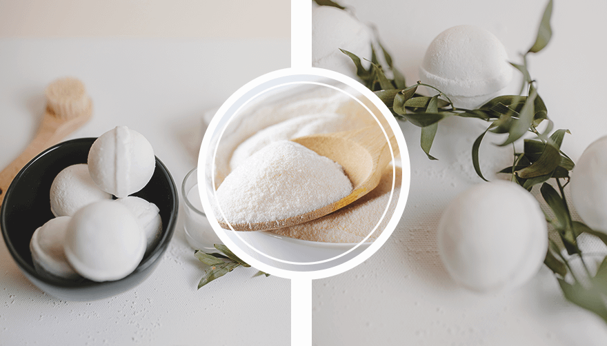 Эта основа для бомбочки подойдет обладательницам кожи, склонной к сухости и аллергиям. Она также подойдет для детей. Для того, чтобы ее приготовить, смешай 5 ст. ложек соды с двумя ст. ложками лимонной кислоты. Добавь по одной ст. ложке морской соли и белой глины и перемешай. Еще понадобится ложка масла — кокосового, авокадо или любого, которое тебе нравится.