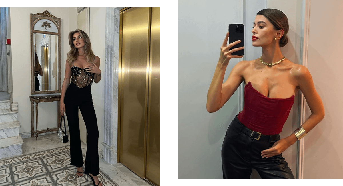 Если собираешься провести новогодние выходные весело, посещая разные мероприятия и рестораны, обязательно купи корсет. Выбери модель в черном, бордовом или сером цвете. Главное, чтобы ткань была плотная и хорошо держала форму.