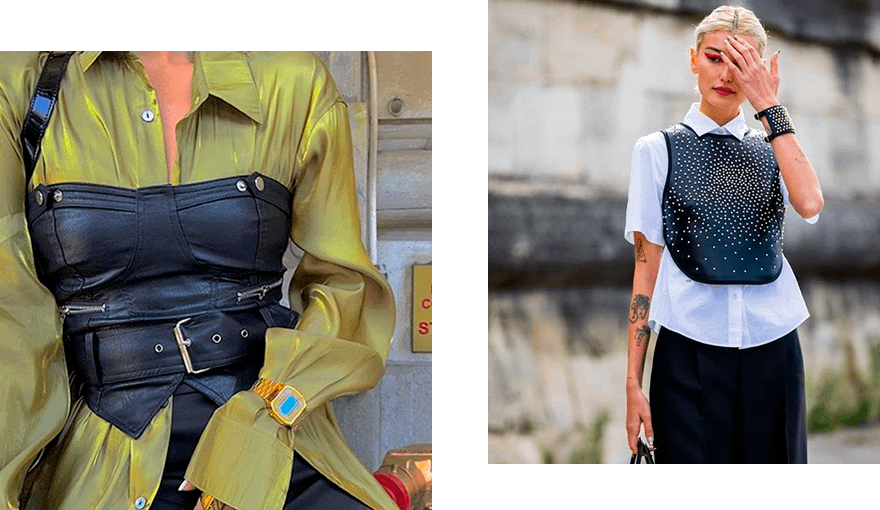 Ты ошибаешься, если думаешь, что кроп-топы и корсеты уместно носить только летом. Стильную вещь вполне возможно вписать и в зимний образ. Ты можешь надеть кожаный корсет с заклепками поверх шелковой блузки, а укороченный черный топ на бретельках, украшенный стразами, носить поверх базовой водолазки.