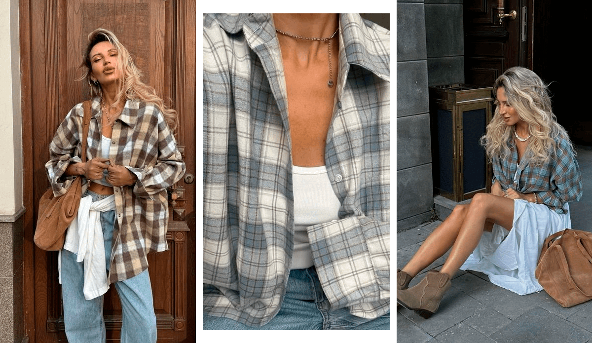 Вещь довольно универсальна и, возможно, уже есть в твоем гардеробе. Если еще не успела обзавестись рубашкой в клетку, выбери модель из дышащей ткани свободного кроя. Чтобы создать полноценный образ Garden Girl, используй голубые джинсы, белый топ и объемную сумку без дополнительной фурнитуры. Рубашку можешь надеть или слегка небрежно повязать на талии.