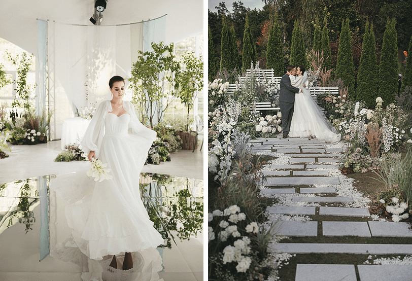 Если говорить об объединяющей особенности свадеб 2020 и 2021 — безусловно, это переход от шумных торжеств на 70–100 гостей к камерным мероприятиям для самых близких, буквально на 30 гостей.