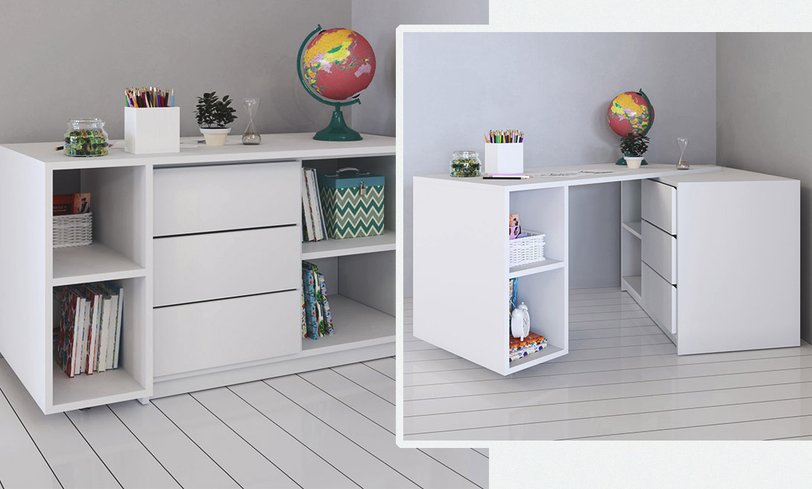 Одним движением руки стол превращается в комод, где можно хранить вещи или книги. Раскладной механизм стола-трансформера позволяет легко собирать и разбирать стол одному человеку.