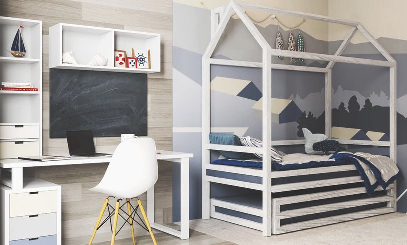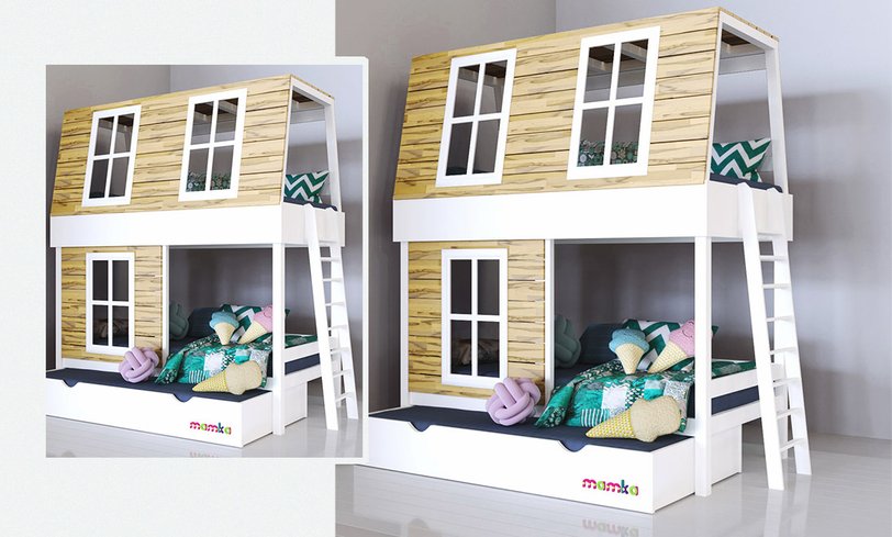 Главный девиз кровати-домика — комфорт, безопасность и игра. «Дом мечтателя» — стильная двухъярусная кровать-чердак с изголовьем в виде домика станет удобным спальным местом для нескольких малышей или многофункциональным пространством для одного ребенка. В любом случае ты сэкономишь пространство для детской, решив вопрос со спальным местом и зоной для игр.