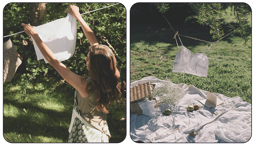 Сушка белых вещей на солнце играет большую роль в сохранении их яркости. Ультрафиолетовые лучи помогают освежить и отбелить одежду. Также будь внимательна и не пересушивай вещи. Это может привести к тому, что ткань проявит желтый оттенок.