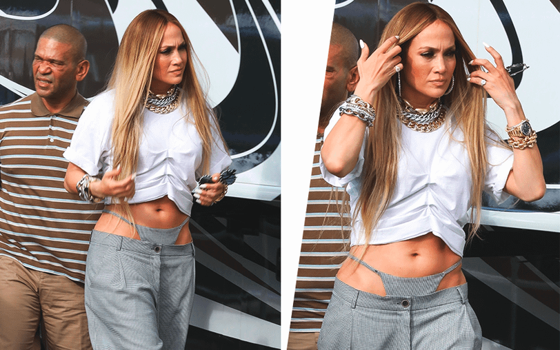 В следующем 2018 году папарацци застали Дженнифер Лопес на съемках ее музыкального клипа в оригинальном сочетании костюмных брюк с заниженной талией и стрингов из того же материала.