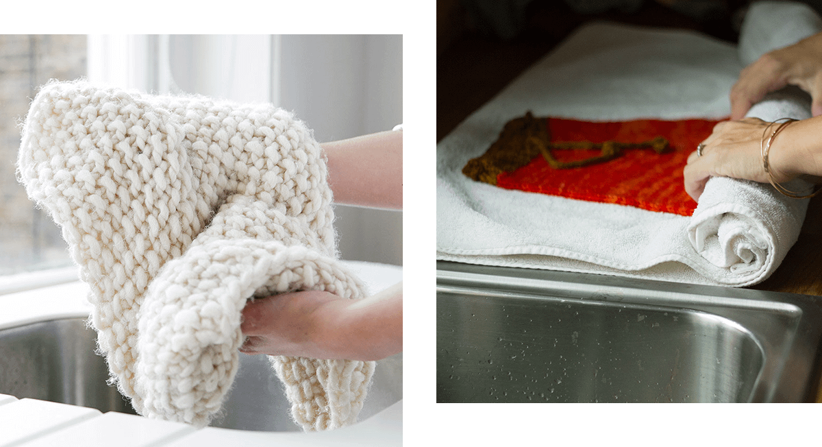 Если полотенце станет насквозь мокрым, поменяй его. Когда вещь из шерсти полностью высохнет, аккуратно сложи ее и убери в шкаф.