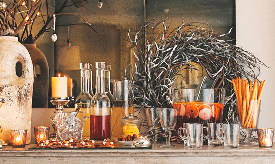 Чтобы сделать новогодний декор полноценным и однородным, необходимо поработать над заполнением свободного пространства. Чем ближе и плотнее выставлены различные элементы декора, тем объемнее кажется весь декор в целом. Использовать место на полках, журнальных столиках и, если повезло, каминном выступе — то, что вам нужно сделать, создавая атмосферу праздника. Используйте свечи, статуэтки, еловые ветки, шишки, палочки корицы, сухие ягоды, чтобы создать имитацию сашэ. Не забывайте про цветовую гамму, чередуйте крупные предметы с мелкими, сочетайте нежные и хрупкие стили с более грубыми и очаровательно неряшливыми, вроде бечевки и дерева. Грубые и фактурные ткани используйте вместе с гладкими и мягкими.