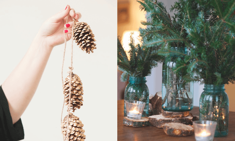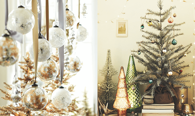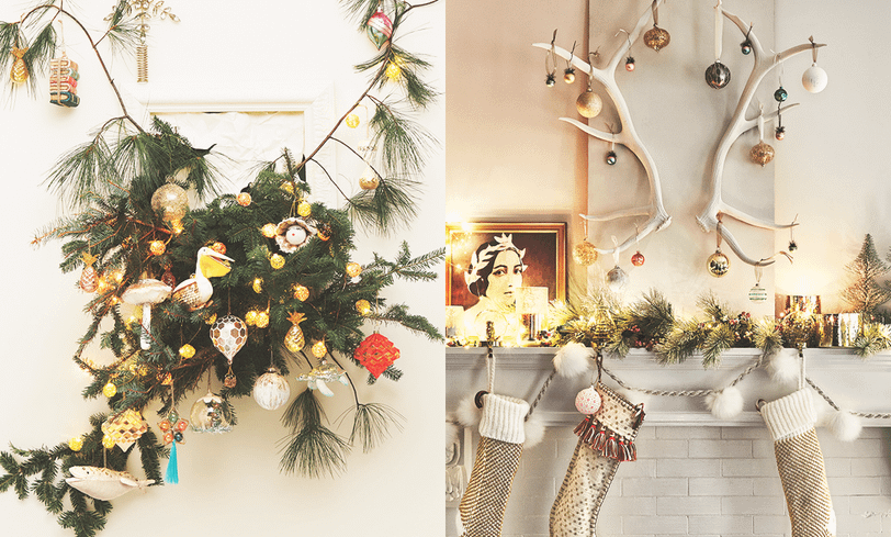 Венок не обязательно должен быть вашим решением. Если круглая форма вас не привлекает, можно использовать еще один тренд 2017-го — ветки. Правильно организованные и украшенные, ветки смогут быть оригинальной альтернативой для елки, которая подойдет под комнату с любом интерьером и габаритами. А для тех, кто хочет быть самым оригинальным, можно вообще отказаться от еловых элементов, используя просто голые ветки — крупные, гладко заточенные и, возможно, покрытые морилкой или краской.