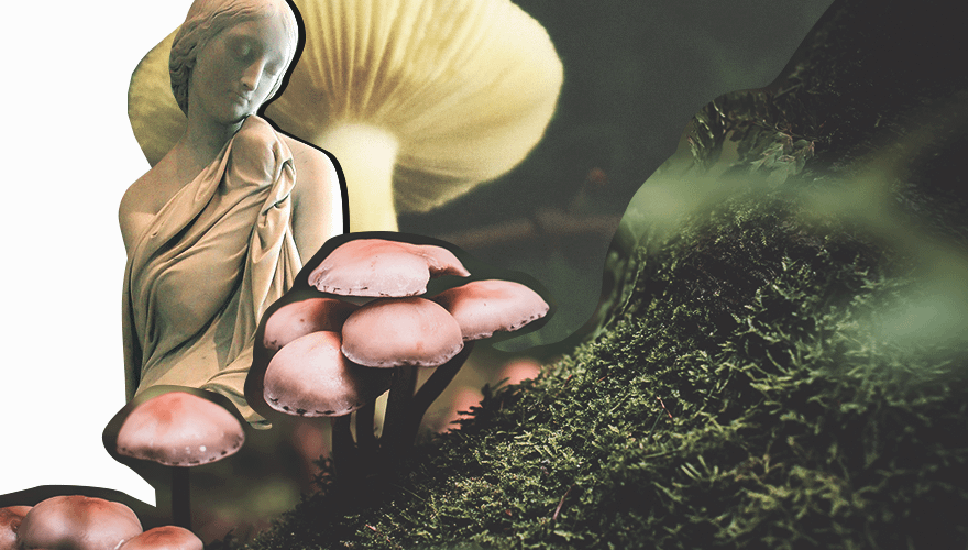 Поедая грибы, помни, что однажды они могут съесть тебя — но только если ты этого хочешь. Компания Coeio создала костюм, пронизанный спорами — сразу после погребения они начинают прорастать и питаться плотью человека. Грибы разлагают тело, обогащают почву и доставляют питательные вещества растениям, которые расположены неподалеку. Концепт придумала биохудожница Чже Рим Ли. Она также предусмотрела более традиционный вариант разложения — погребальный саван со спорами.