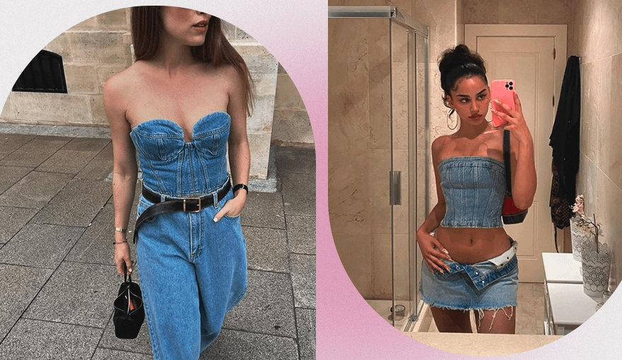 Еще один тренд этого года — образы, составленные с использованием исключительно джинсовых вещей. Стильная и универсальная ткань остается в моде не первый год, поэтому джинсовый корсет может стать хорошим вложением.