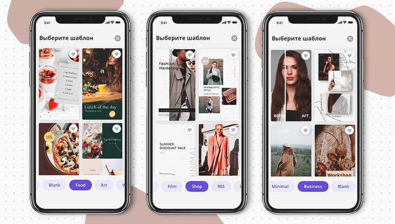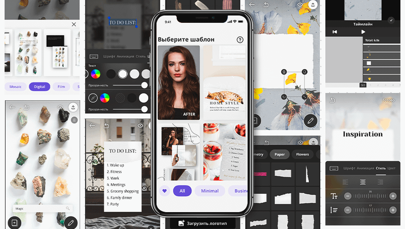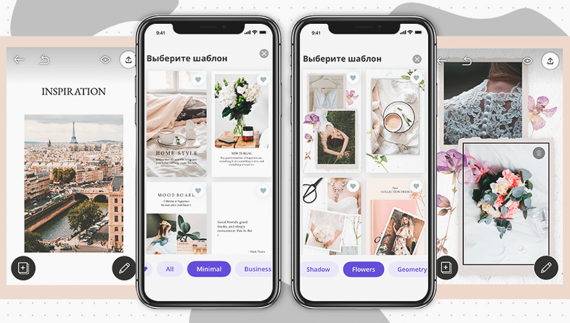 Возможности приложения позволяют применять шаблоны, разбитые по стилистике, что существенно экономит время. Серия Minimal подойдет для оформления личного блока или бизнес-аккаунта, которые придерживаются принципов slow living. Flowers особенно оценят флористы и представители свадебного бизнеса, а Film — любители винтажа.