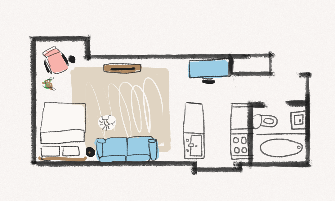 2. Такая планировка не рассчитана на рабочее место, так что придется работать на кухне или за кофейным столиком.