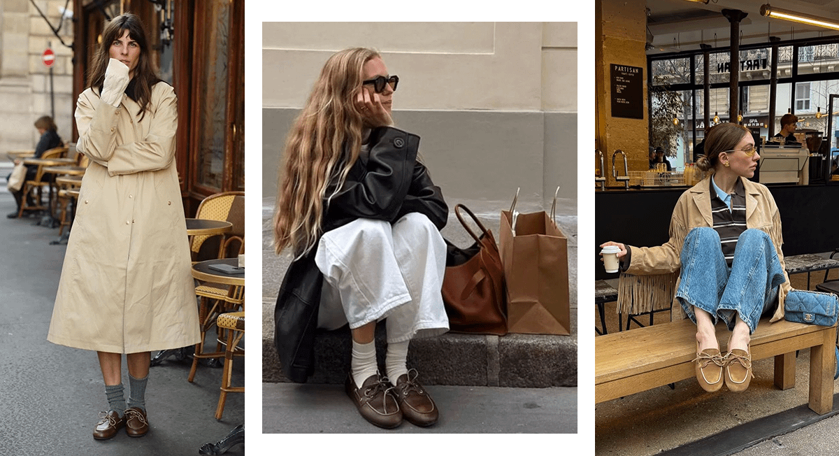 Обувь, о существовании которой как будто забыли на несколько лет, вновь популярна. Правда, если раньше в моде были яркие мокасины из замши, теперь популярны модели в коричневом цвете из кожи. Они хорошо подходят для создания аутфита в сдержанном европейском стиле — с белыми или темно-серыми джинсами, кожаной курткой или уютным кардиганом, тренчем с отложным или английским воротником.