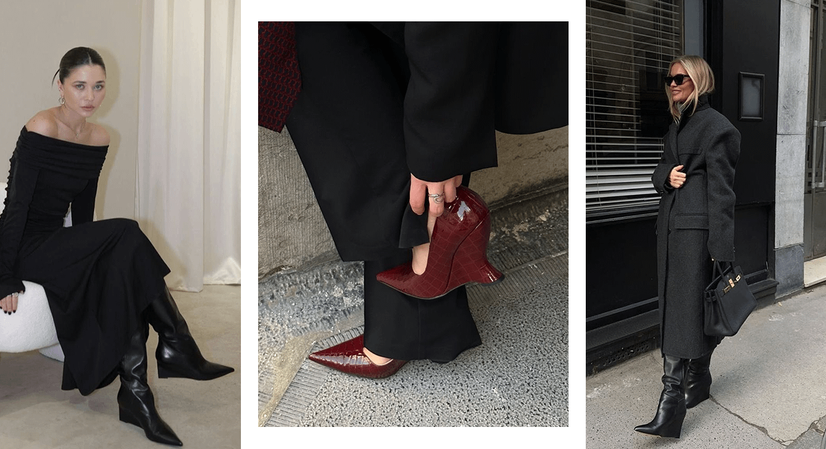 Еще один неожиданный обувной тренд этого сезона — обувь на танкетке в стиле конца девяностых — начала нулевых. Она выглядит женственно и сексуально, поэтому отлично сочетается с мини-юбками, платьями и шортами. При этом черными или темно-коричневыми сапогами на танкетке также можно дополнить образ с пальто в пол или тренчем. Выбор, как и всегда, за тобой.