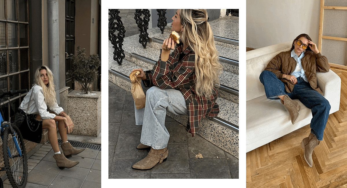 Оптимальный вариант — казаки, штафирка (верхняя часть) которых на 3–4 см выше косточки на щиколотке. Это позволяет носить обувь не только с платьями и юбками, но и джинсами и брюками, не укорачивая их. Самые популярные в этом сезоне, впрочем, как и в предыдущих, — казаки в бежевом, темно-коричневом и черном цветах.