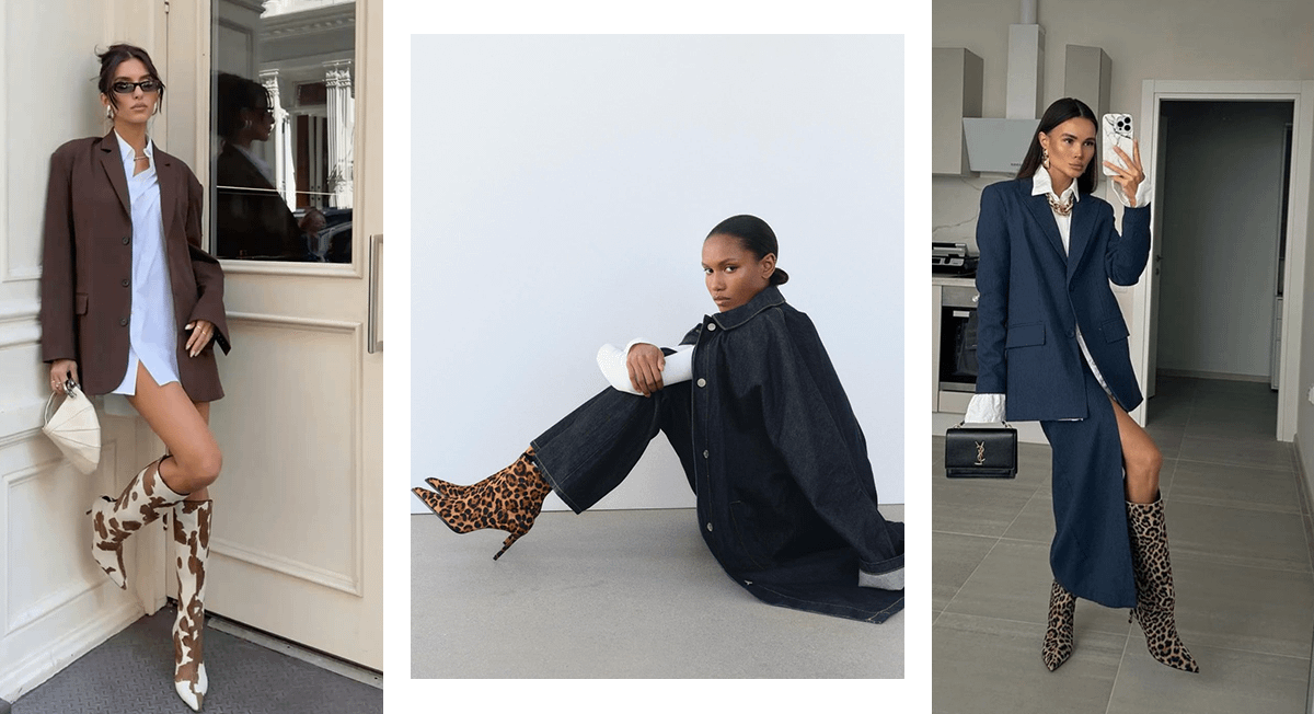 Сразу оговоримся — этот тренд не для всех. Но если ты не боишься выглядеть ярко, обязательно примерь сапоги с леопардовым, тигровым или коровьим принтом. Самые популярные — модели с острым носом и тонким, но не слишком высоким каблуком. Их можно вписать в образ с мини-юбкой и плащом в пол, а также носить с костюмом, дополненным юбкой.
