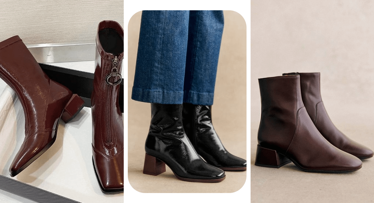 Присмотрись к черным полусапожкам на массивном каблуке: он может быть очень низким или, наоборот, высоким и акцентным. Сочетай обувь с голубыми джинсами, классическими брюками или платьем в винтажном стиле.
