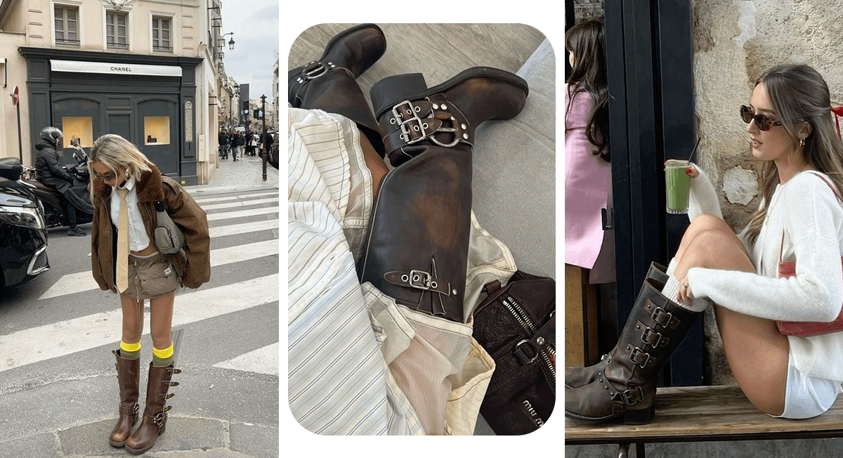 Еще в прошлом году бренд Miu Miu, который в последнее время задает большую часть модных трендов, презентовал в осенне-зимней коллекции мотоциклетные сапоги. С тех пор модель остается в тренде, а бюджетные бренды создают похожую, но более доступную для большинства обувь.