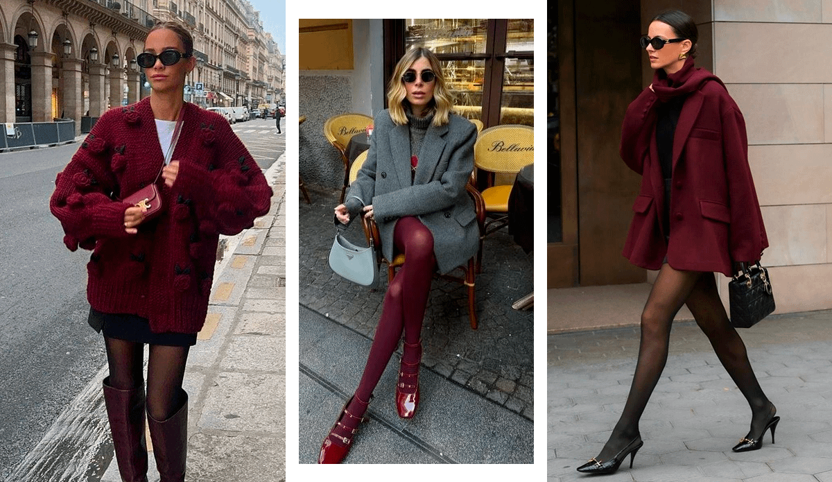 Если пока не успела купить вещь в насыщенном бордовом цвете, примерь вечернее платье и брюки классического кроя. Также обрати внимание на шелковые юбки и вишневые аксессуары: колготки, сумки, шарфы. В моде остается и яркая обувь, в том числе туфли Мэри Джейн.