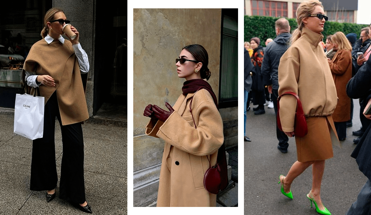 Если у тебя еще нет одежды в модном оттенке, купи теплый кардиган или необычную накидку. Если с нуля собираешь базовый осенний гардероб, примерь удлиненное пальто или тренч в оттенке кэмел. Сможешь носить его с черной, бордовой, зеленой и даже розовой одеждой.