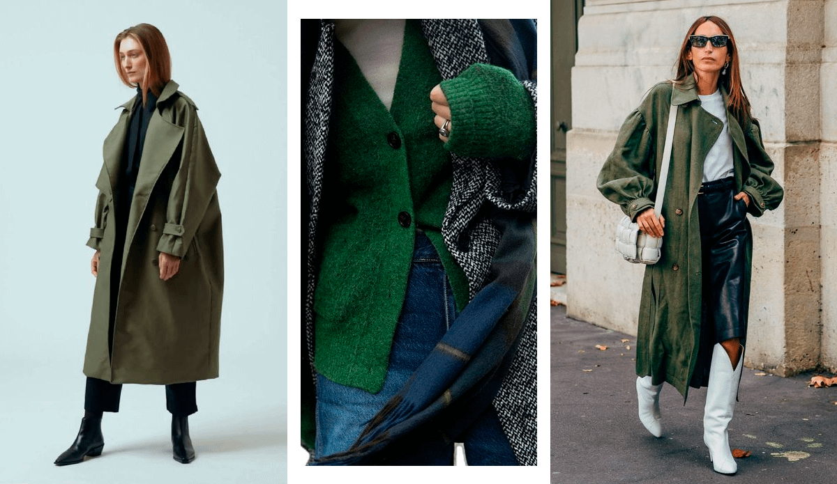 Присмотрись к верхней одежде в зеленом цвете. Это может быть базовое пальто или кожаная куртка в классическом стиле. Акцентные брючные костюмы и жакеты из плотной ткани также помогут разнообразить повседневный гардероб.
