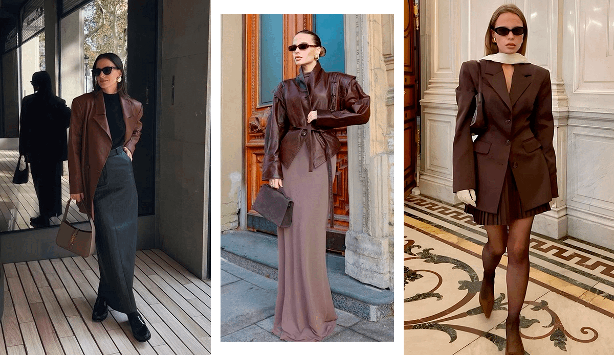 Нестрашно, если ты не очень любишь светлые оттенки или просто предпочитаешь более практичные решения. В таком случае можешь дополнить гардероб одеждой в темно-коричневом цвете. Это может быть кожаная куртка, шерстяной костюм или вязаное платье в пол. Также в тренде коричневые колготки. Они не такие скучные, как черные, но при этом не приковывают к себе слишком много внимания.
