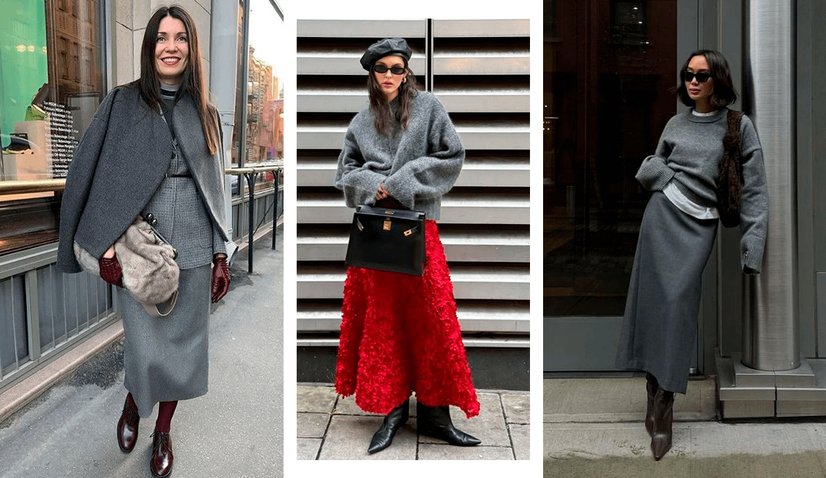 Если обожаешь стиль кэжуал, купи серый свитер и удлиненную юбку примерно в том же оттенке. Носи их с акцентными кедами, яркой сумкой или массивными украшениями. Тем, кто любит классику, советуем достать с дальних полок серые жакеты и брюки. Их можно вписать в образ с ярко-оранжевой кофтой или бордовыми сапогами.