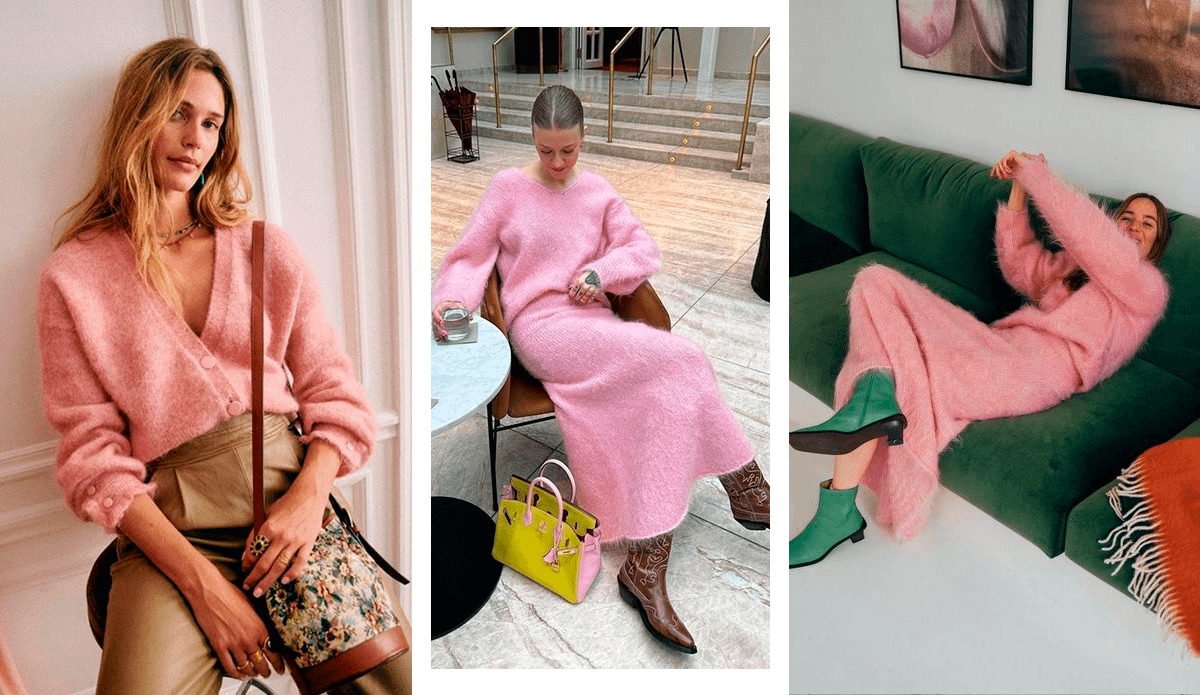 Подумай о покупке уютного нежного-розового кардигана или свитера. Если считаешь, что этот оттенок не очень сочетается с твоим тоном кожи, остановись на аксессуарах. Это может быть шелковый розовый бант для волос или коктейльная сумочка.