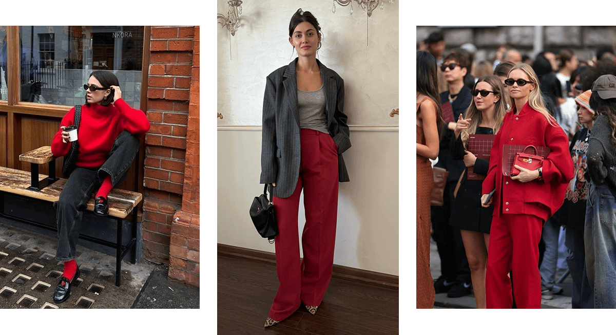Poppy Red — еще один оттенок, заслуживший внимание Pantone этой осенью. Несмотря на то, что маковый красный — сложный, он может стать частью повседневного гардероба. Например, если сочетать красный бомбер из шерсти или свитер свободного кроя с черными брюками. Или надеть серый костюмный пиджак и яркие брюки. В любом случае образ получится одновременно и ярким, и многофункциональным.