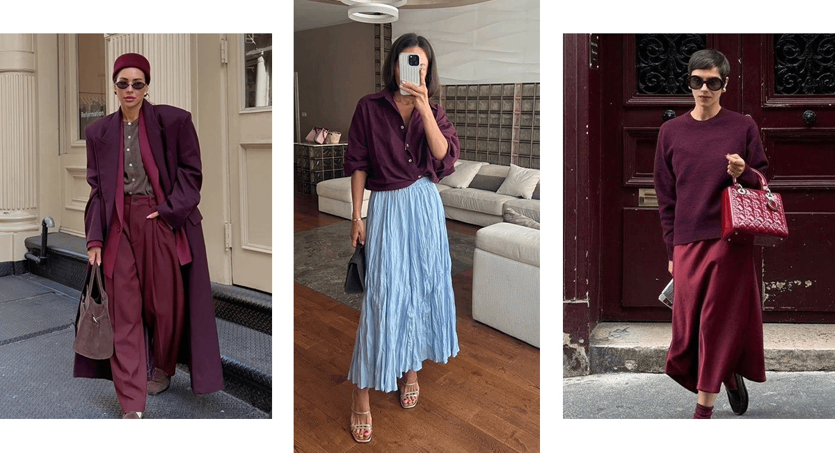 Mauve Wine — это сложный и глубокий винный цвет с мягким лиловым подтоном. Одежда в этом оттенке выглядит благородно и немного загадочно, сочетает драматизм и женственность. При этом лучше всего «Розовое вино» выглядит в образах с серым, классическим голубым, кремовым и медным цветами.