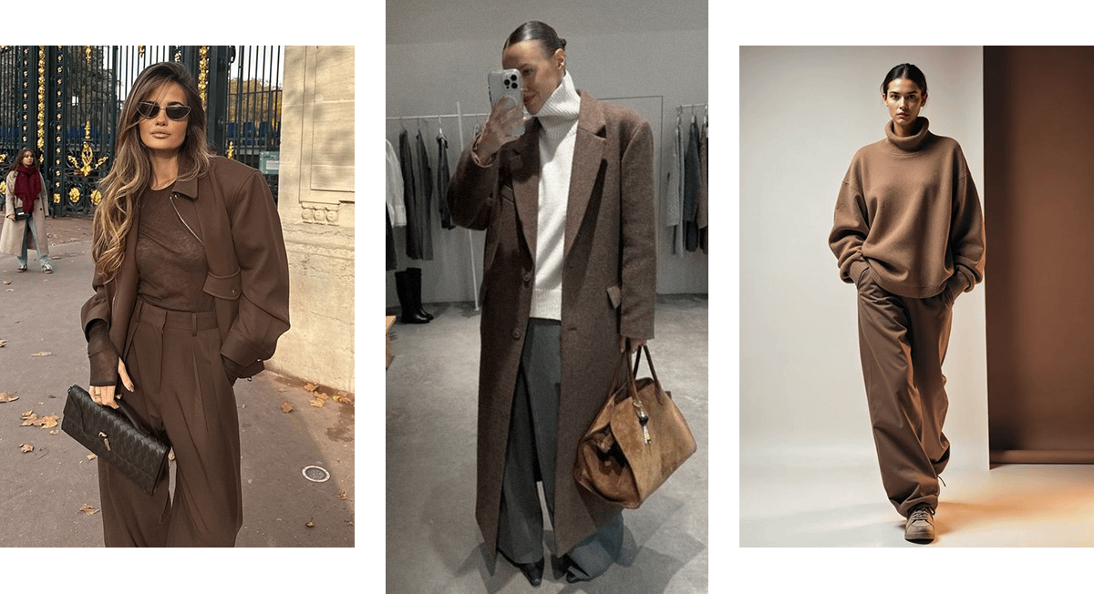 Mocha Mousse — один из главных фаворитов этого сезона по версии Pantone. Благородный оттенок коричневого идеален для создания расслабленных и уютных образов в полуклассическом стиле. Причем эффектно выглядят как карамельно-коричневые свитеры и брюки, так и пальто.
