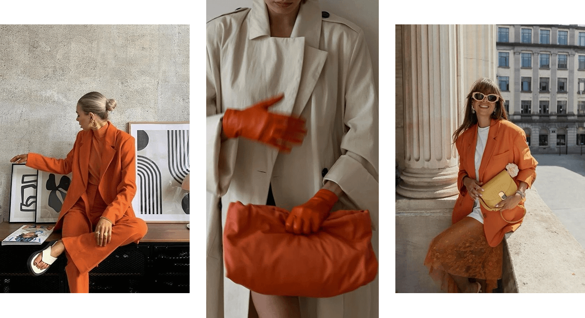 Desert Sun — это смесь теплого коричневого и насыщенного оранжевого цветов. Он напоминает закатное солнце и песчаные бури, отлично сочетается с синим, зеленым, красным и другими природными оттенками. Если готова к смелым экспериментам, купи пальто, куртку или брючный костюм в ярком цвете. Или ограничься аксессуарами — сумкой, шарфом, обувью.