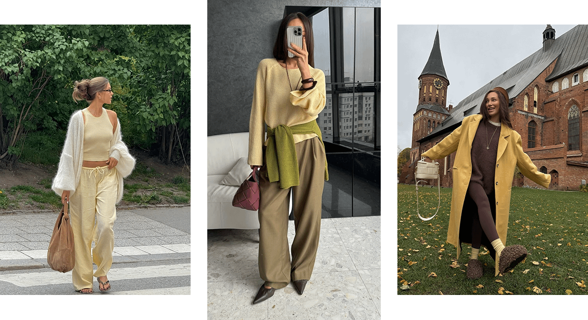 Lemon Grass — это одновременно нежный и яркий оттенок, который может вдохнуть в базовый гардероб новую жизнь. Природный лимонный символизирует стремление к единению с природой и отлично сочетается с коричневым, зеленым и другими натуральными цветами. Оптимальный выбор — вещи простого кроя. При этом они могут быть дополнены разными вставками или пестрыми швами.