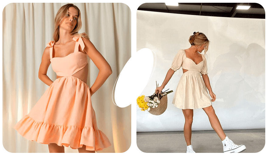 Не менее актуальны в этом сезоне яркие сарафаны с вырезами на талии. Такая одежда позволяет подчеркнуть красивую фигуру и визуально придает ей форму песочных часов.
