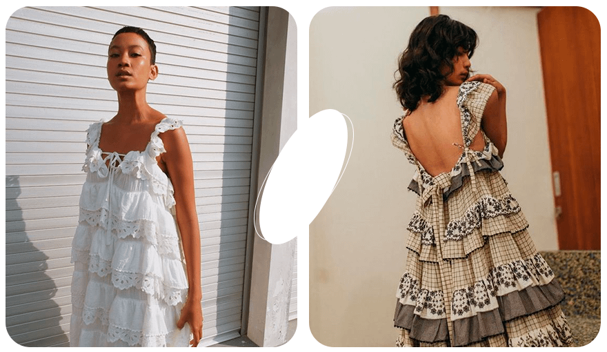 Один из самых романтичных трендов этого лета — сарафаны с рюшами, воланами и оборками. Как правило, такую одежду изготавливают из тонкой натуральной ткани, например, хлопка или муслина.