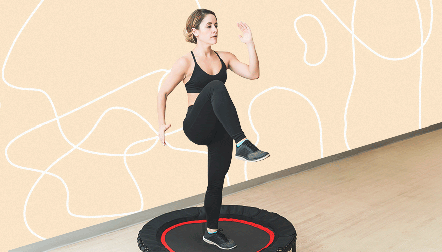 Ты можешь чередовать упражнения из высокоинтенсивных интервальных тренировок с прыжками или даже выполнять их, оставаясь на батуте — те же приседания или подпрыгивания на одной ноге. Сочетание разных движений и их повторение в течение 20 секунд поможет сжечь больше калорий, чем при стандартных HIIT.